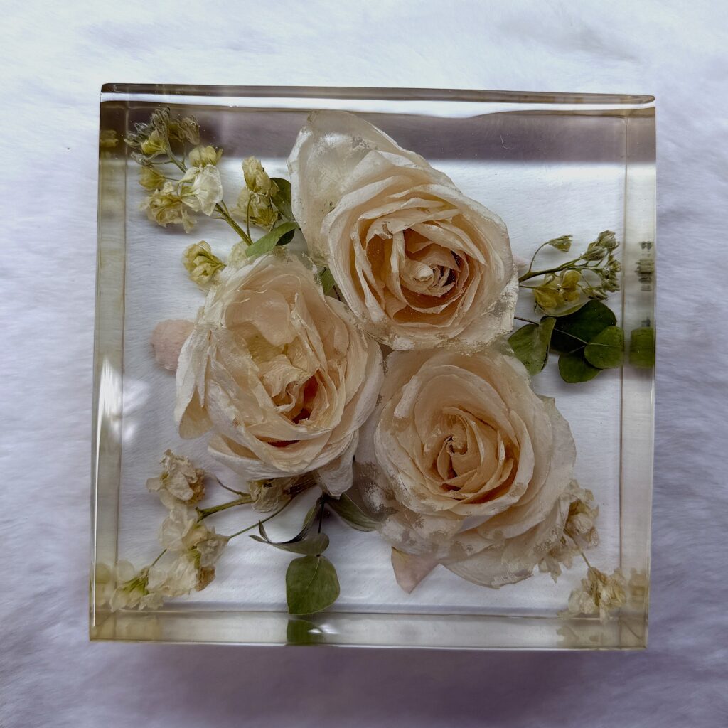 Mide 15cm de ancho, 15cm de alto y 5cm de profundidad.
